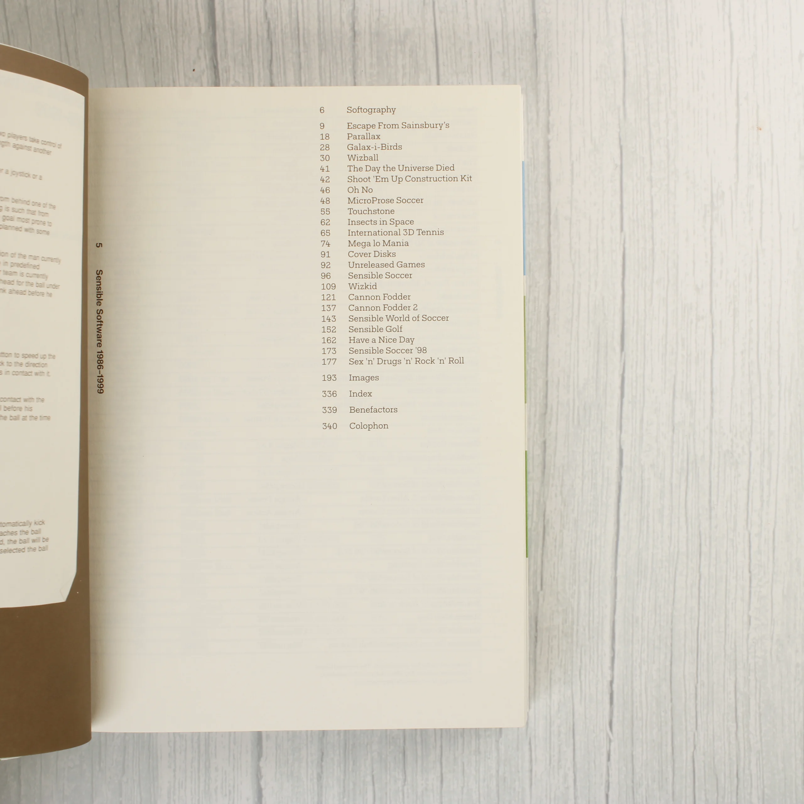 A Sensible Software 1986–1999 című könyv a neves brit videójáték-fejlesztő stúdió történetét és munkásságát mutatja be. A fehér borítón színes négyzetekben különböző pixeles játékgrafikák láthatók, többek között repülőgép, katonák, focista és helikopter. A belső oldalakon részletes interjúk, szöveges leírások és gazdag illusztrációk találhatók a stúdió olyan híres játékairól, mint a Sensible Soccer vagy a Cannon Fodder. A könyv tartalmaz egy teljes szoftverlistát, fekete hátterű grafikai gyűjteményeket és fejlesztési dokumentációkat is. A kiadvány puhafedeles, ragasztott kötéssel készült, a papír jó minőségű, matt felületű.
