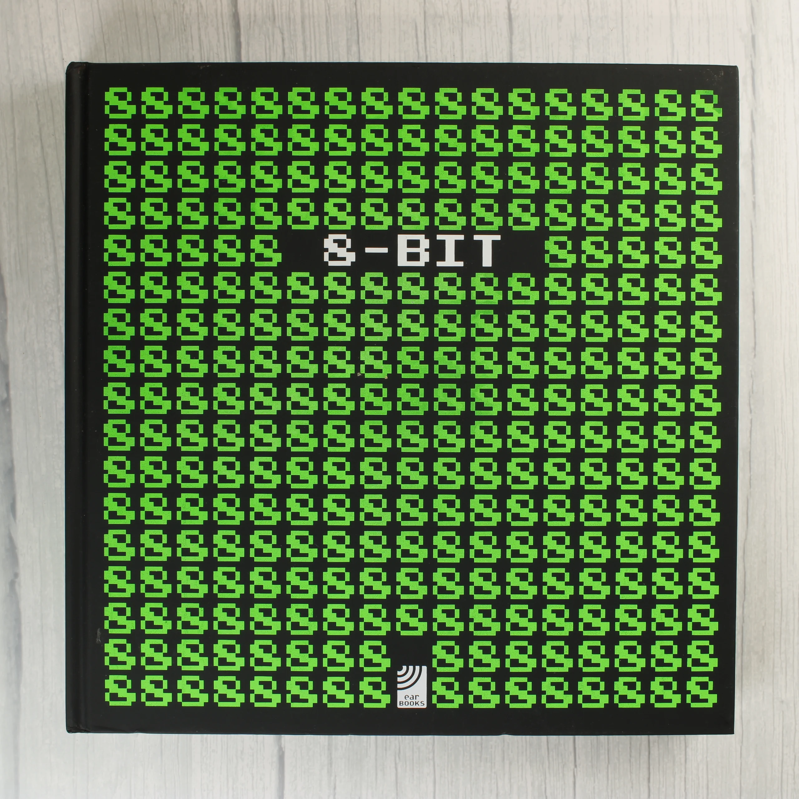 Ez a keménytáblás könyv a korai videójátékok világát mutatja be, különös tekintettel a 8-bites korszakra. A fekete borítót zöld, pixeles mintázat díszíti, közepén fehér '8-BIT' felirattal. A belső oldalakon színes, nagy felbontású illusztrációk láthatók olyan klasszikus játékokról, mint a Space Invaders, a Bubble Bobble és különböző sport- vagy harcművészeti programok. A könyv angol és német nyelvű szöveges leírásokat tartalmaz a játékok történetéről és vizuális világáról. A kiadvány az earBOOKS gondozásában jelent meg, minőségi papírra nyomtatva, gazdag képi anyaggal dokumentálva a pixel art korszakát. A borító és a lapok élei épek, a kötés szoros, a könyv megkímélt állapotban van.