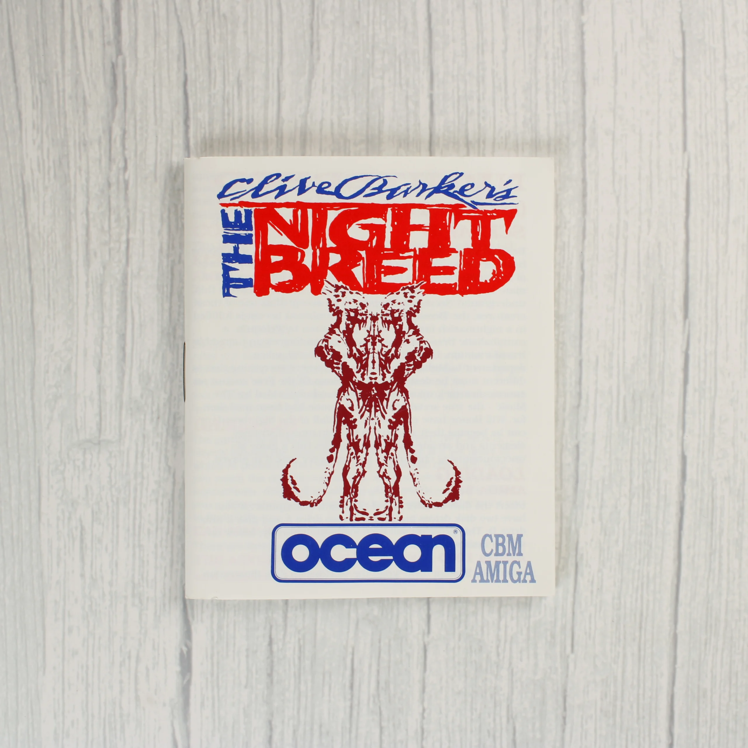 Clive Barker's Nightbreed videójáték Commodore Amiga platformra. A csomag tartalmazza az eredeti műanyag tokot, amelyben egy koponyákat ábrázoló borító található. A készlet része két darab kék színű, 3,5 colos floppy lemez, amelyeken fehér felirat jelzi a játék címét és az Ocean Software logóját. A lemezeken a 'Not for re-sale - Free with Screen Gems Amiga Pack' felirat olvasható. Mellékelve van továbbá egy fehér alapszínű, színes grafikával ellátott használati útmutató füzet is. A kiadvány 1990-es dátumozású, az Ocean Software gondozásában jelent meg.