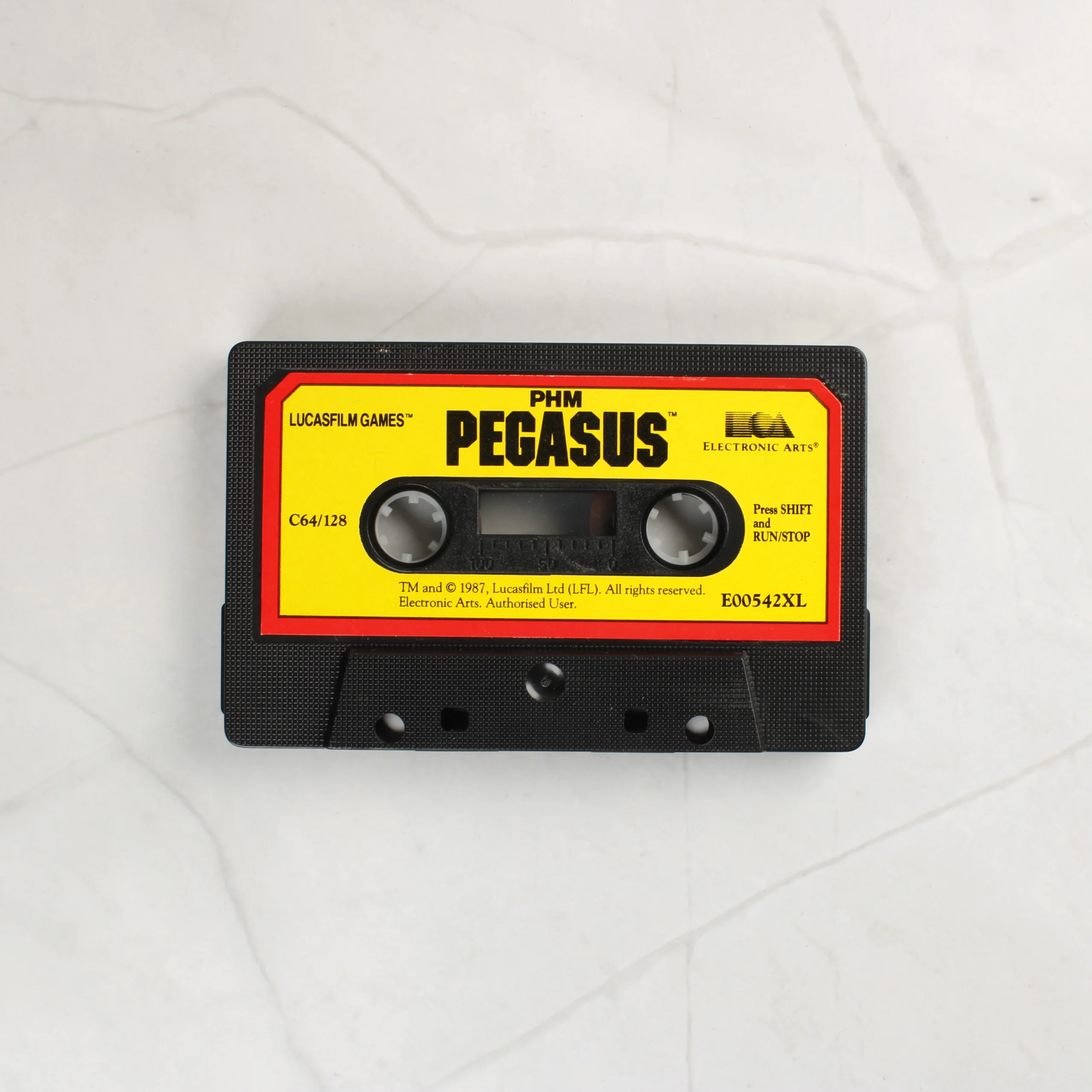 A PHM Pegasus című videójáték Commodore 64/128 platformra készült kiadása. A csomag egy átlátszó műanyag tokot tartalmaz, amelyben egy sárga és piros színekkel domináló papírborító található. A borító elején egy szárnyashajó látható akció közben, felette a játék címe olvasható. A hátoldalon négy képernyőkép mutatja be a játékmenetet, valamint angol nyelvű leírás olvasható a szimulációról. A készlet része maga a fekete színű adathordozó kazetta is, amelyen sárga alapon fekete feliratú címke található a játék nevével és a kiadók logóival. A terméket az Electronic Arts adta ki a Lucasfilm Games közreműködésével. A csomagoláson látható a vonalkód és a gyártási hely, amely Anglia.
