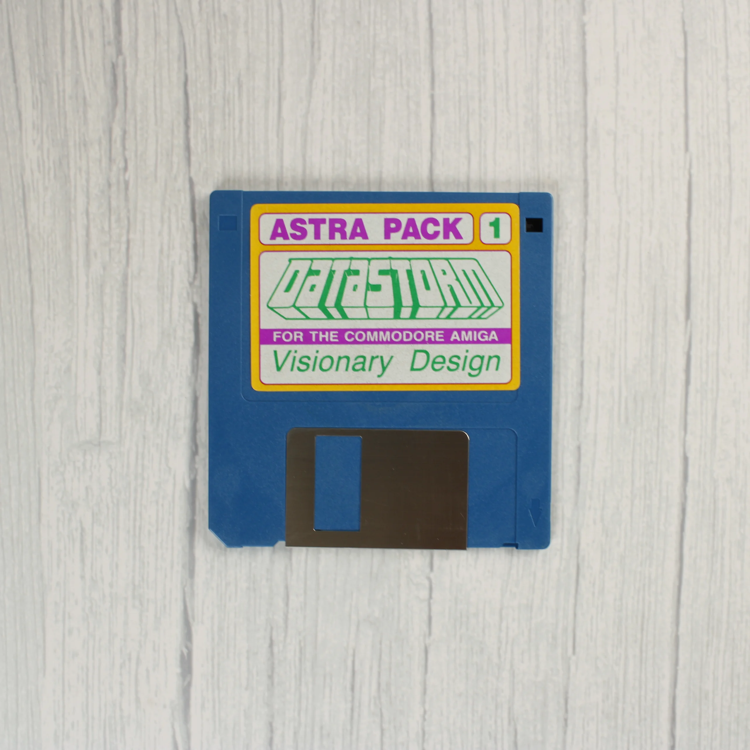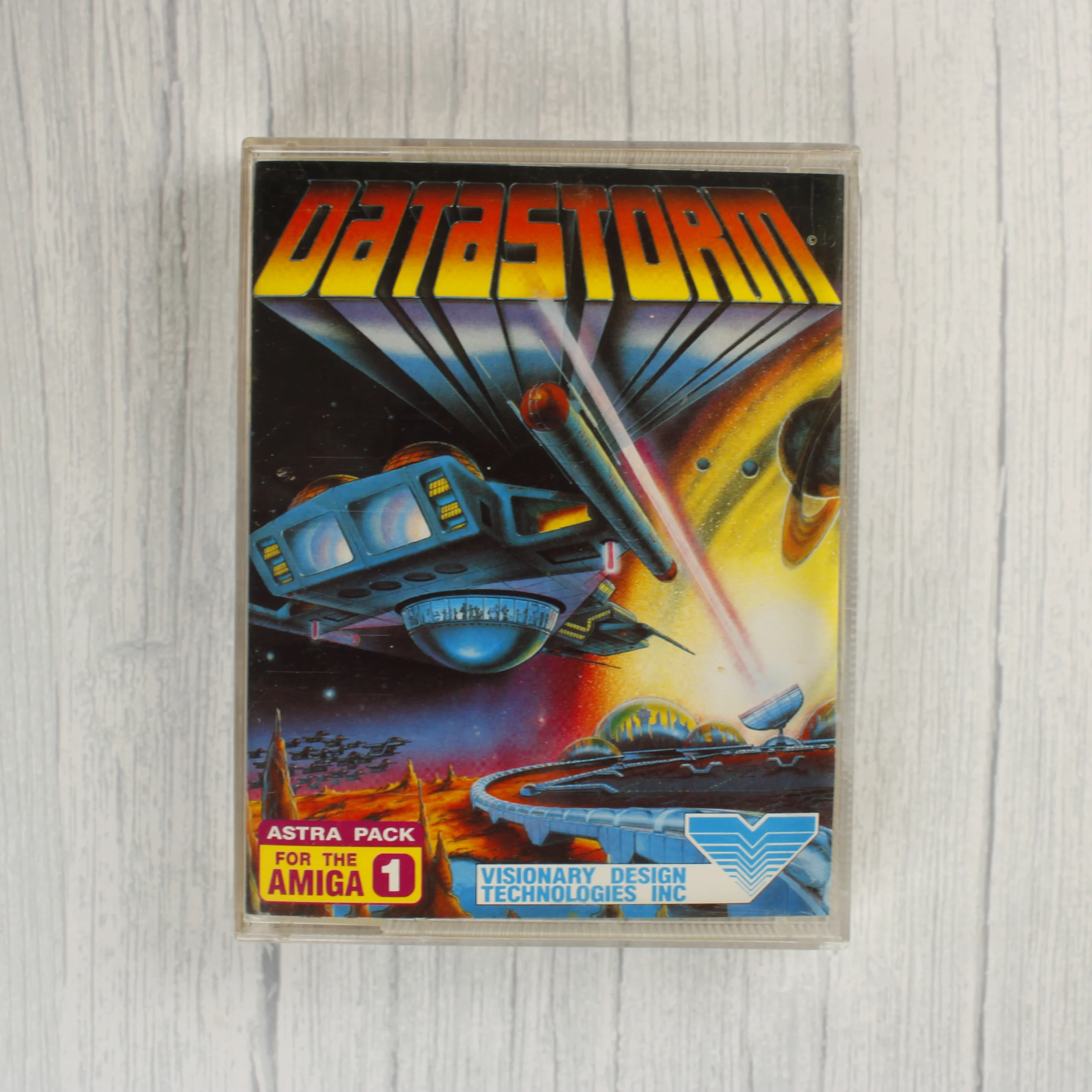 A Datastorm című videójáték Commodore Amiga platformra készült kiadása. A csomag egy átlátszó műanyag tokot tartalmaz, amelyben egy színes, sci-fi tematikájú borító látható űrhajókkal és bolygókkal. A hátoldalon sárga alapon játékmenet-fotó és angol nyelvű leírás olvasható. A készlet része egy kék színű, 3,5 colos floppy lemez, amelyen fehér alapon zöld és lila feliratú címke található. A Visionary Design Technologies által fejlesztett szoftver az Astra Pack sorozat tagja.
