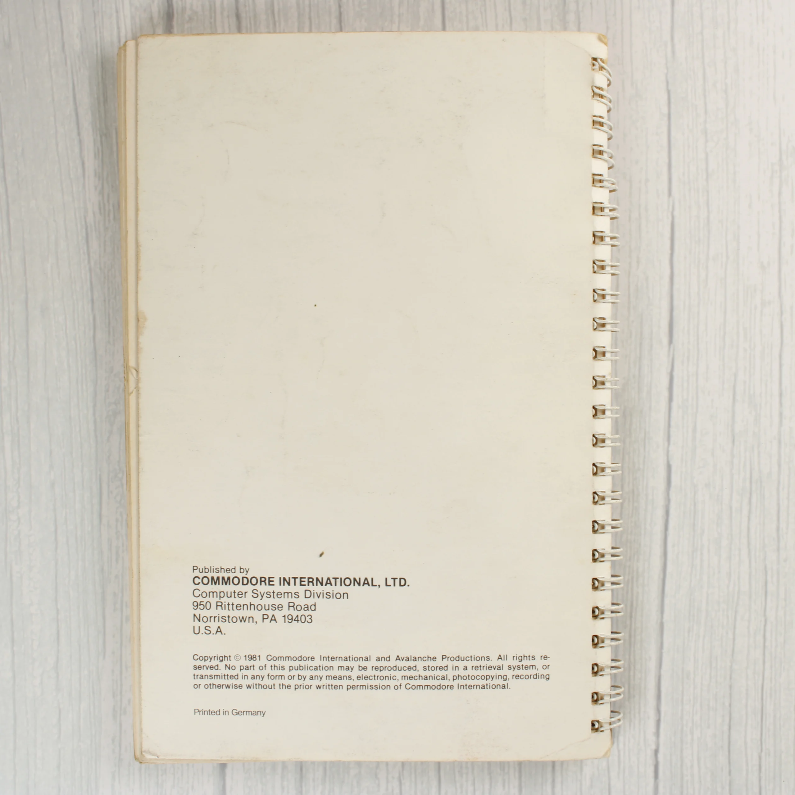 Ez a spirálkötésű kézikönyv a Commodore VIC-20 otthoni számítógéphez készült útmutató. A kék borítón fehér felirat olvasható: Personal Computing on the VIC20 - A friendly computer guide. A kiadványt a Commodore International és az Avalanche, Inc. jegyzi. A belső oldalakon BASIC programkódok, illusztrációk és technikai adatok, például csatlakozók lábkiosztásai láthatók. A könyv fehér műanyag spirállal van összefogva, a lapok enyhén sárgultak, ami a korából adódik. A borítón kisebb kopások és felületi karcok észlelhetők, különösen a széleken és a sarkoknál.