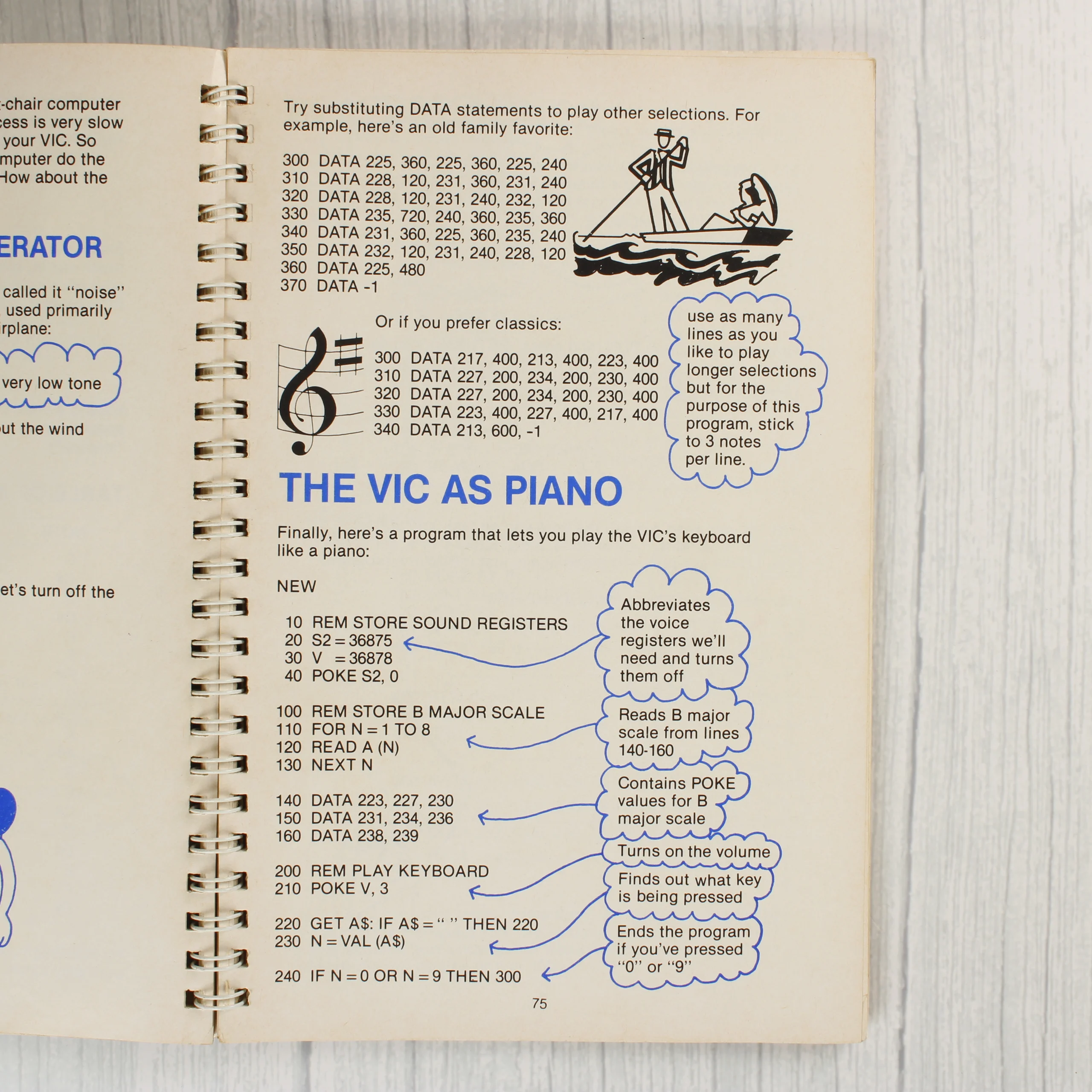 Eredeti Commodore VIC-20 felhasználói kézikönyv és útmutató spirálkötésben, 1981-es kiadás.