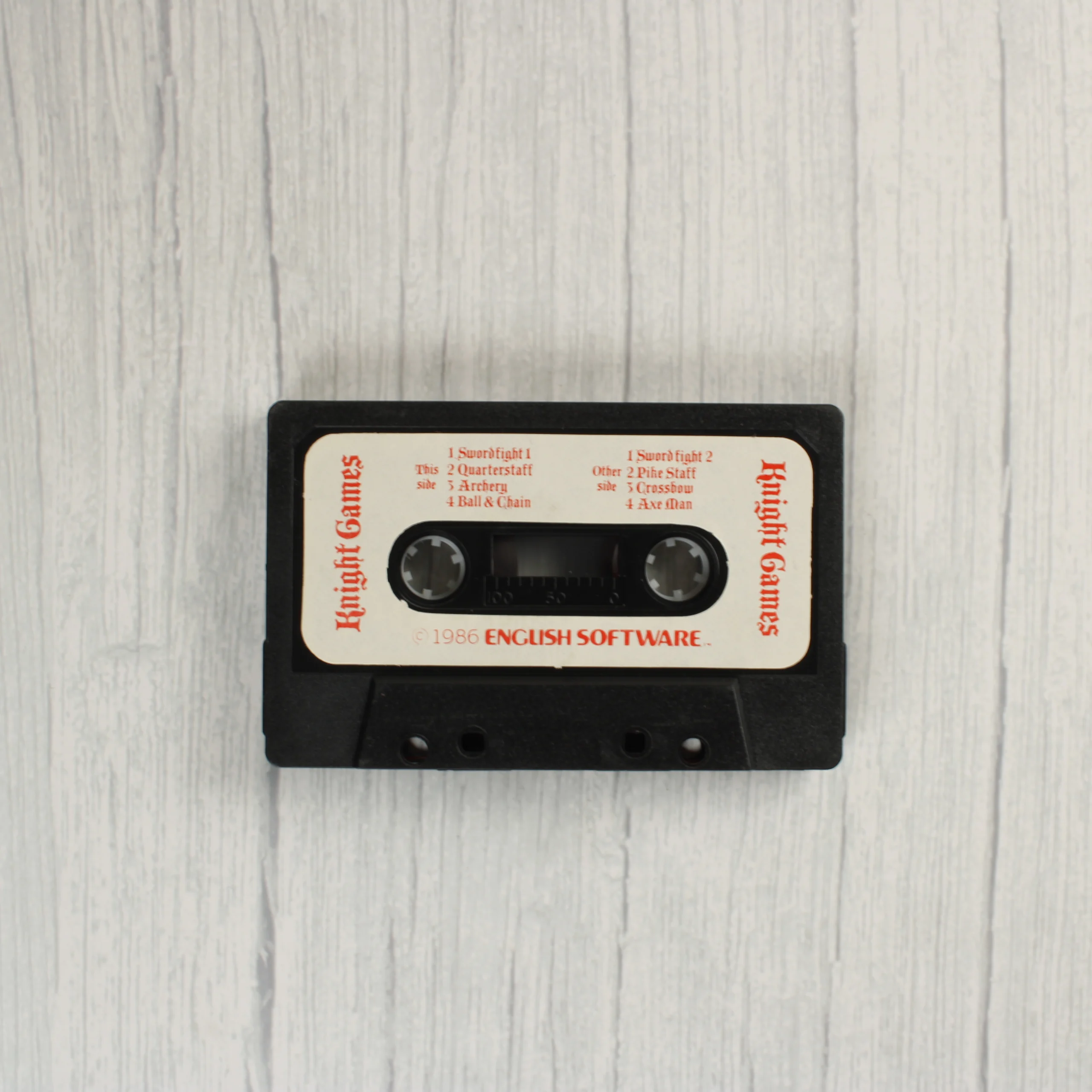 A Knight Games című videójáték Commodore 64 és C128 rendszerekre készült kiadása. A csomag egy fekete műanyag tokot tartalmaz, amelyben egy mágnesszalagos kazetta található. A borítón középkori témájú grafika látható, amely lovagi küzdelmeket ábrázol. A hátoldalon nyolc különböző játékmód képernyőmentései és rövid leírásai szerepelnek, mint például a kardvívás, íjászat és számszeríjászat. A kazetta fekete színű, fehér címkével, amelyen piros betűkkel olvasható a játék címe és a kiadó neve. A termék az English Software gondozásában jelent meg 1986-ban.