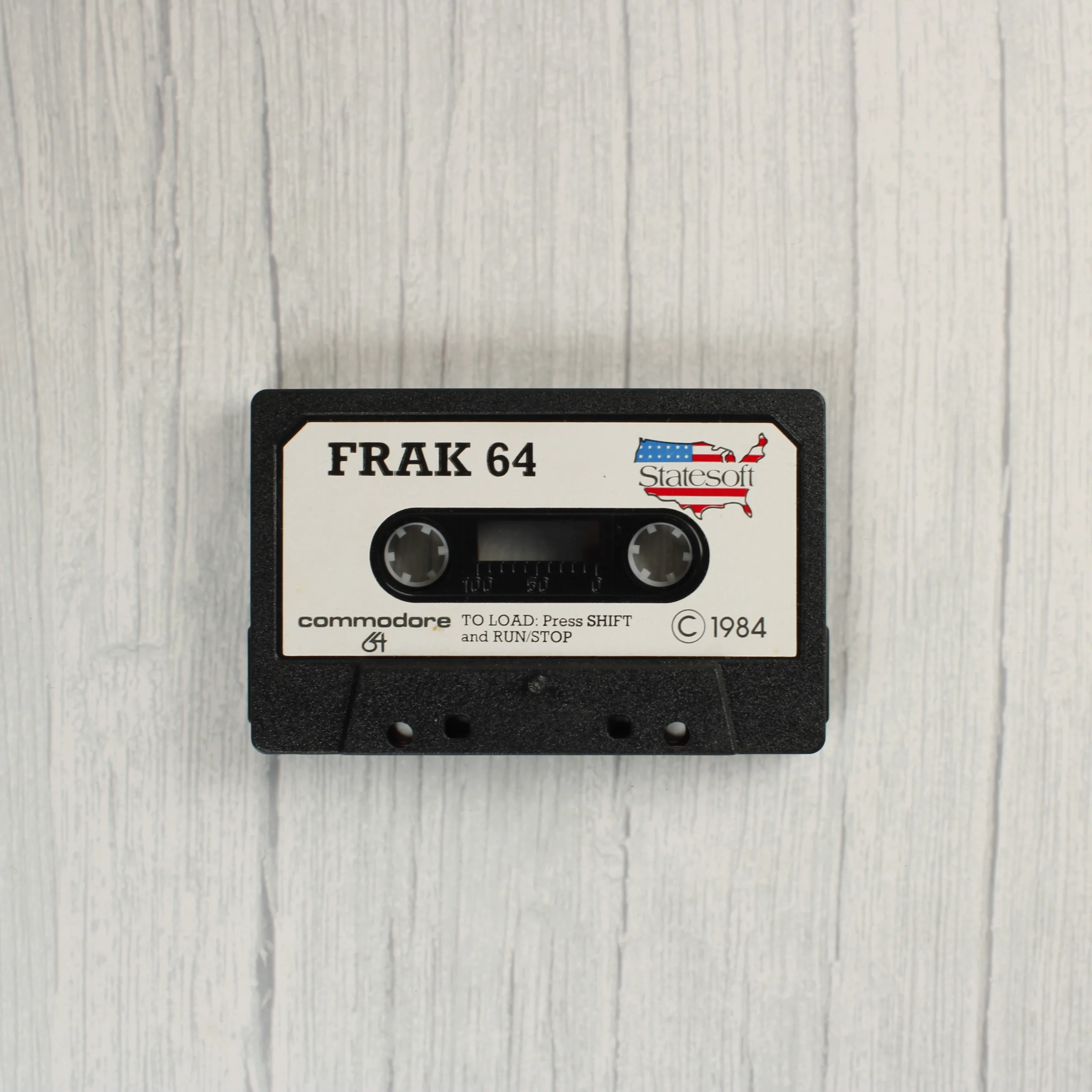 Frak! videójáték Commodore 64-re, eredeti kazettás formátumban, 1984-es Statesoft kiadás, műanyag tokkal és színes borítóval.