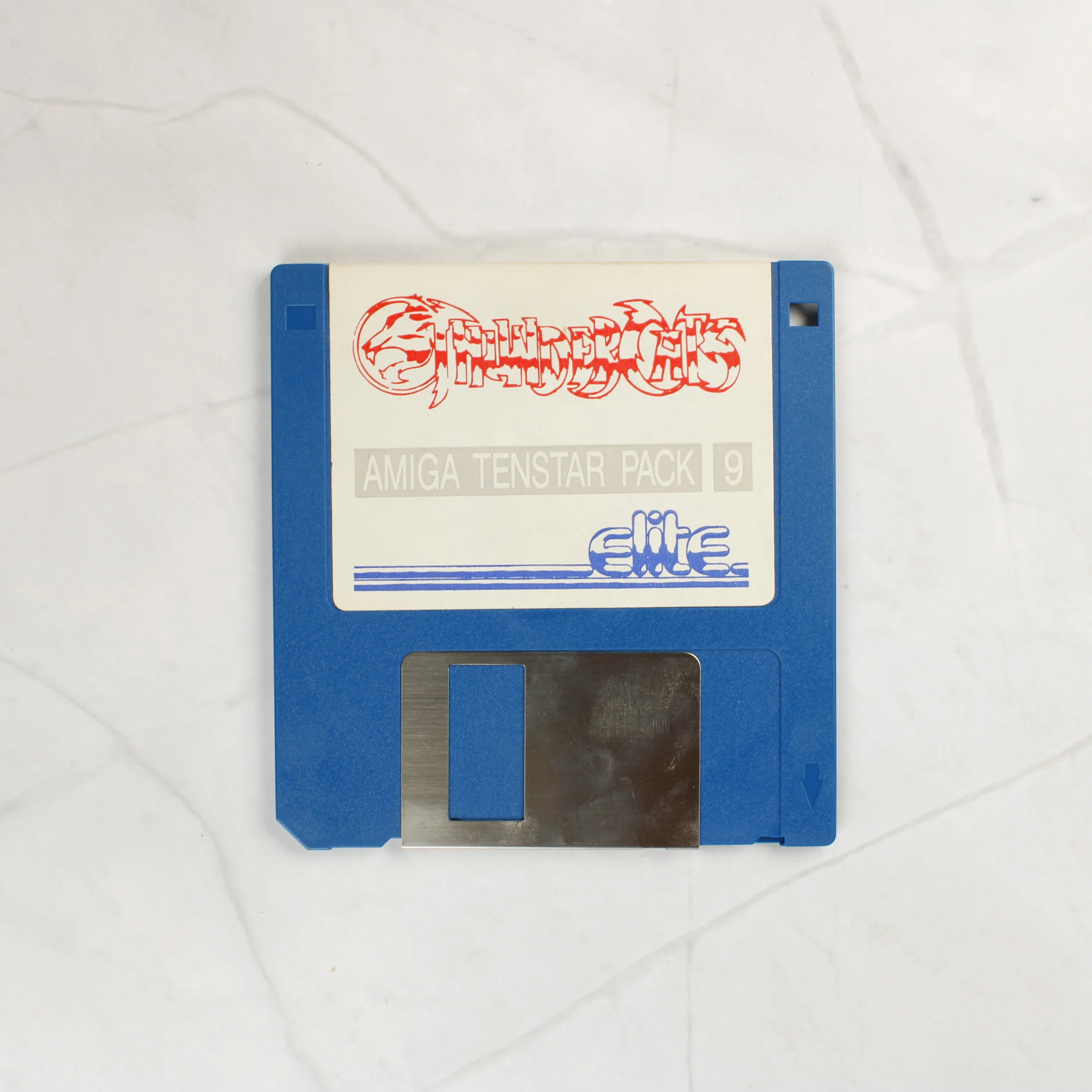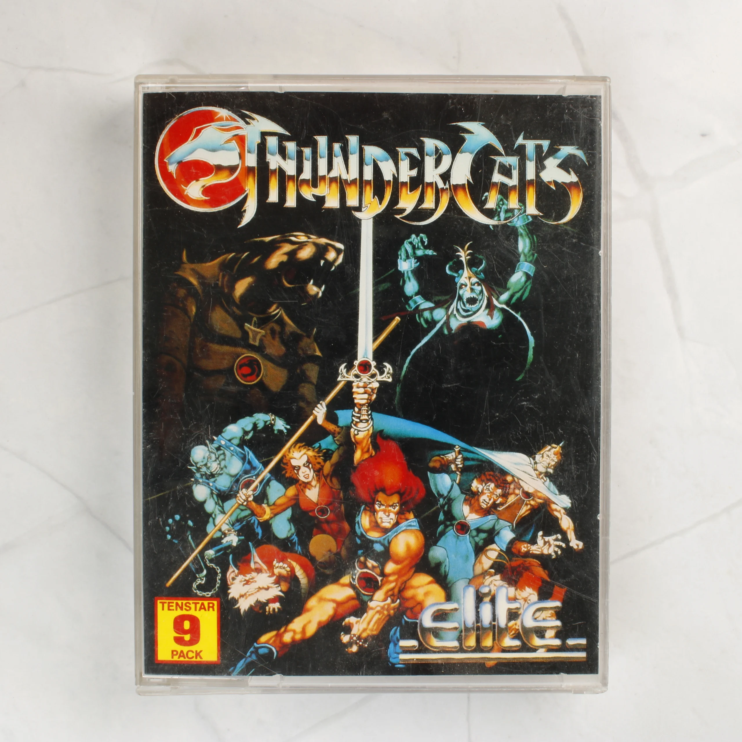A ThunderCats című videójáték Amiga platformra készült kiadása, amely az Amiga TenStar Pack 9 részeként jelent meg. A csomag egy kék színű, 3,5 colos floppy lemezt tartalmaz, amelyen a játék címe és az Elite logója látható. A szoftver egy átlátszó műanyag tokban található, amelynek előlapján a sorozat karaktereit ábrázoló színes illusztráció látható. A hátoldalon sárga alapon egy játékmenet-fotó és angol nyelvű leírás olvasható a programról. A kiadvány az Elite Systems gondozásában jelent meg 1987-ben. A fizikai hordozó és a papírborító állapota korának megfelelő, a műanyag tokon használatból eredő karcok láthatóak.