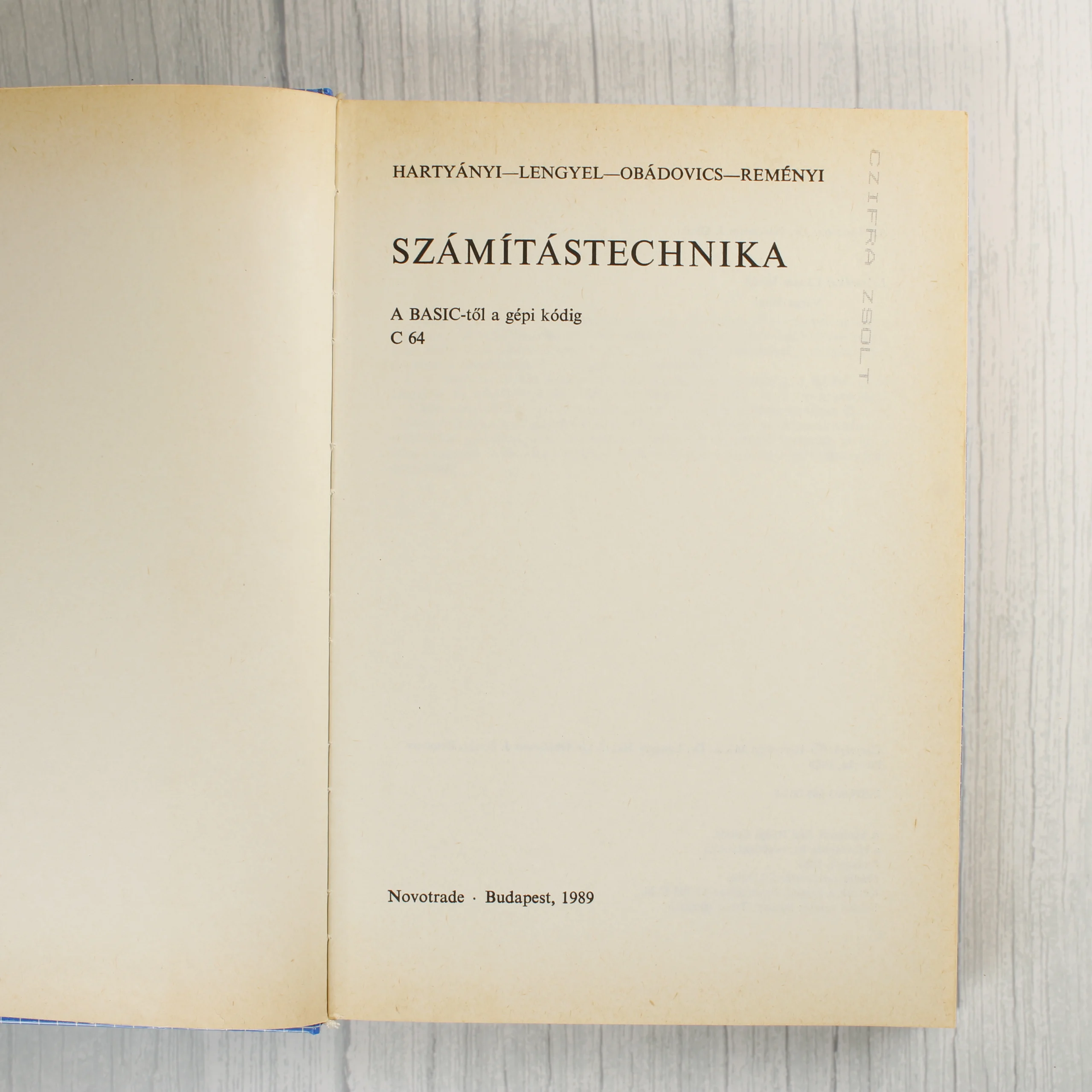 Számítástechnika C 64 szakkönyv a BASIC-től a gépi kódig. Hartyányi, Lengyel, Obádovics és Reményi műve a Novotrade kiadásában, 1989-ből.