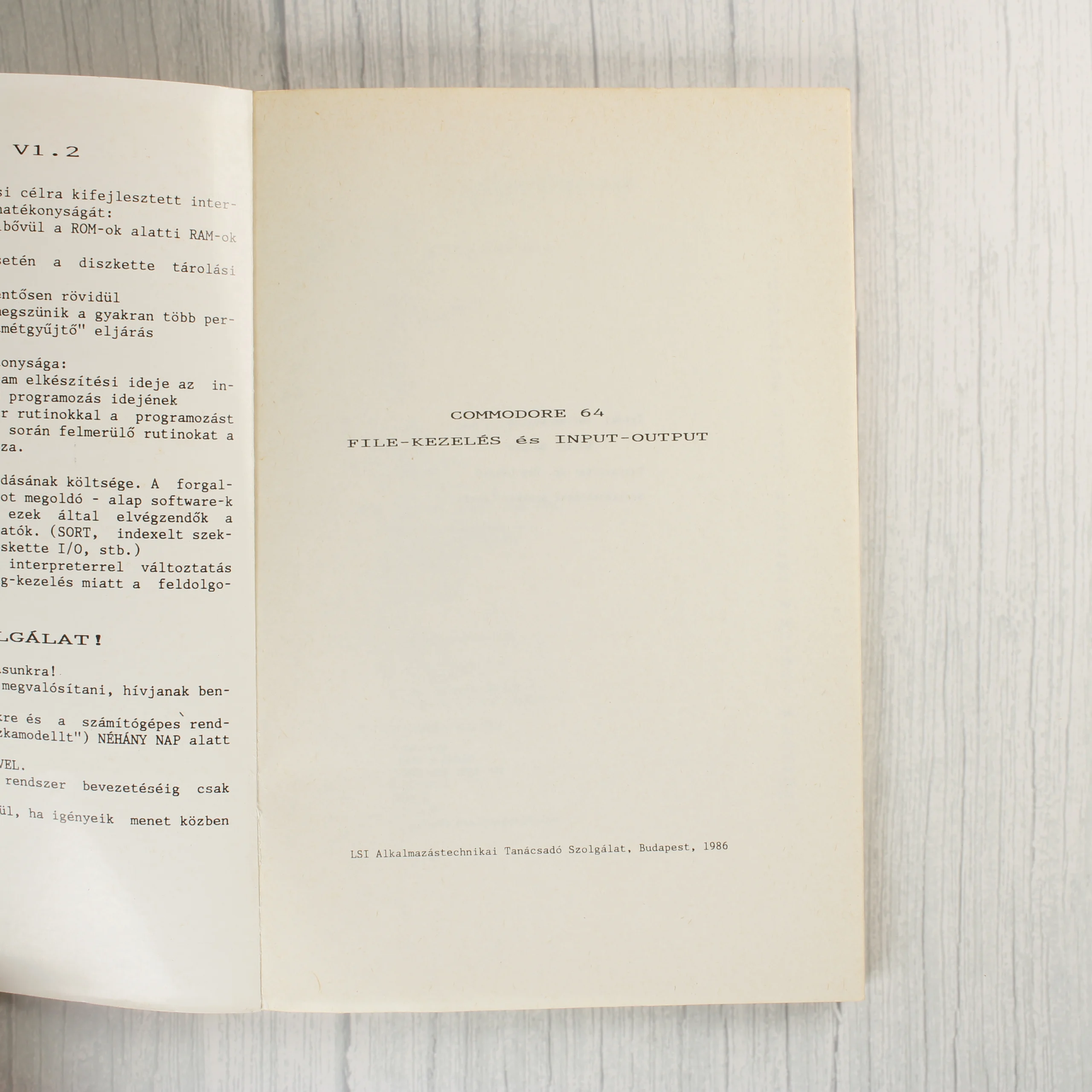 Commodore 64 file-kezelés és input-output technikai szakkönyv az LSI gondozásában, 1986-ból. Részletes BASIC és hardver útmutató gyűjtőknek.