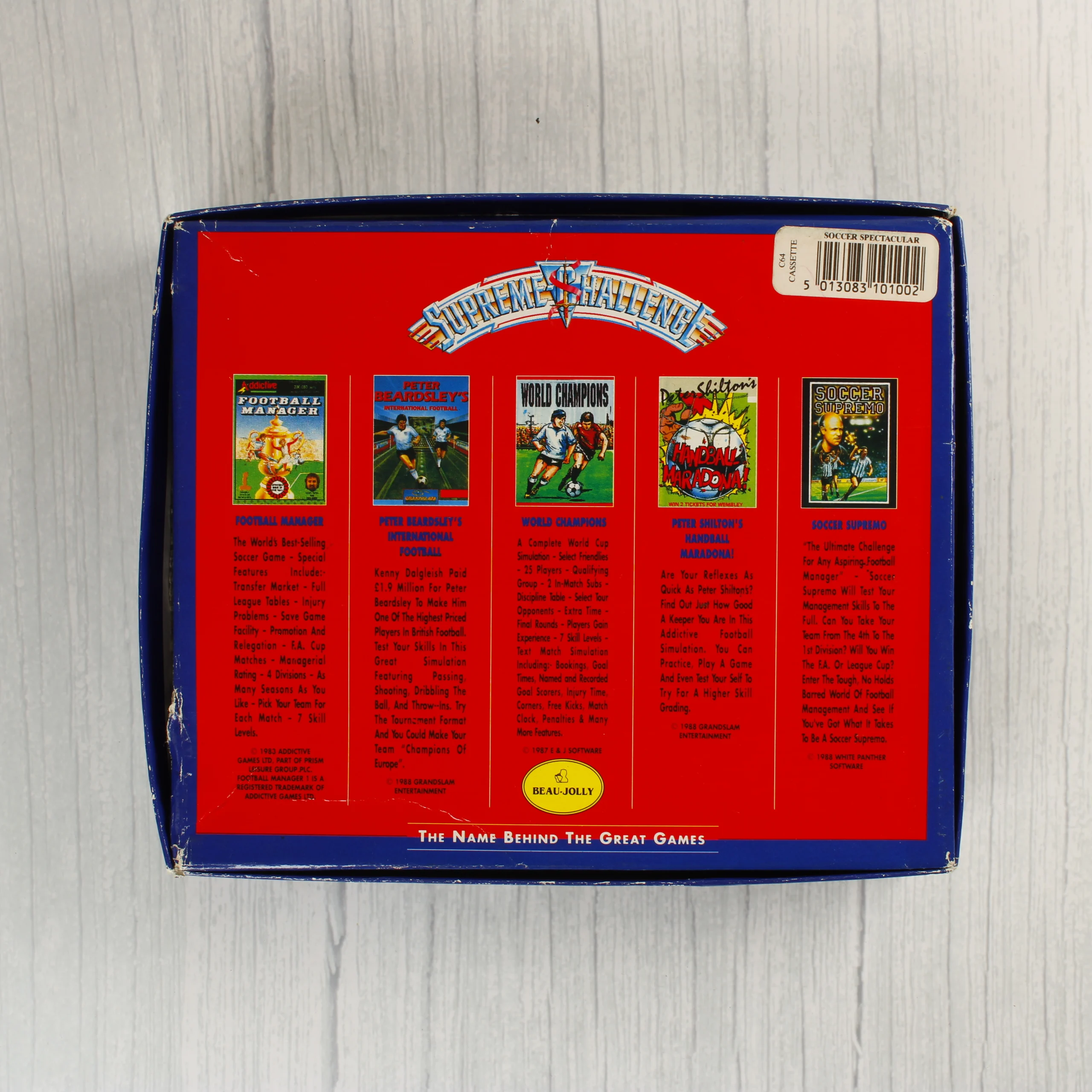 A Supreme Challenge: Soccer Spectacular egy videójáték-válogatás Commodore 64/128 rendszerekre. A csomag öt különböző labdarúgással kapcsolatos játékot tartalmaz: Football Manager, Peter Beardsley's International Football, World Champions, Peter Shilton's Handball Maradona! és Soccer Supremo. A termék egy nagyméretű, piros alapszínű kartondobozban érkezik, amelynek elején a világbajnoki trófea látható. A szoftver adathordozója egy fekete színű kazetta, amely egy egyedi műanyag tálcában helyezkedik el a dobozon belül. A csomagolás hátoldalán részletes leírások és képernyőmentések találhatók az egyes játékokról. A kiadvány a Beau-Jolly gondozásában jelent meg.