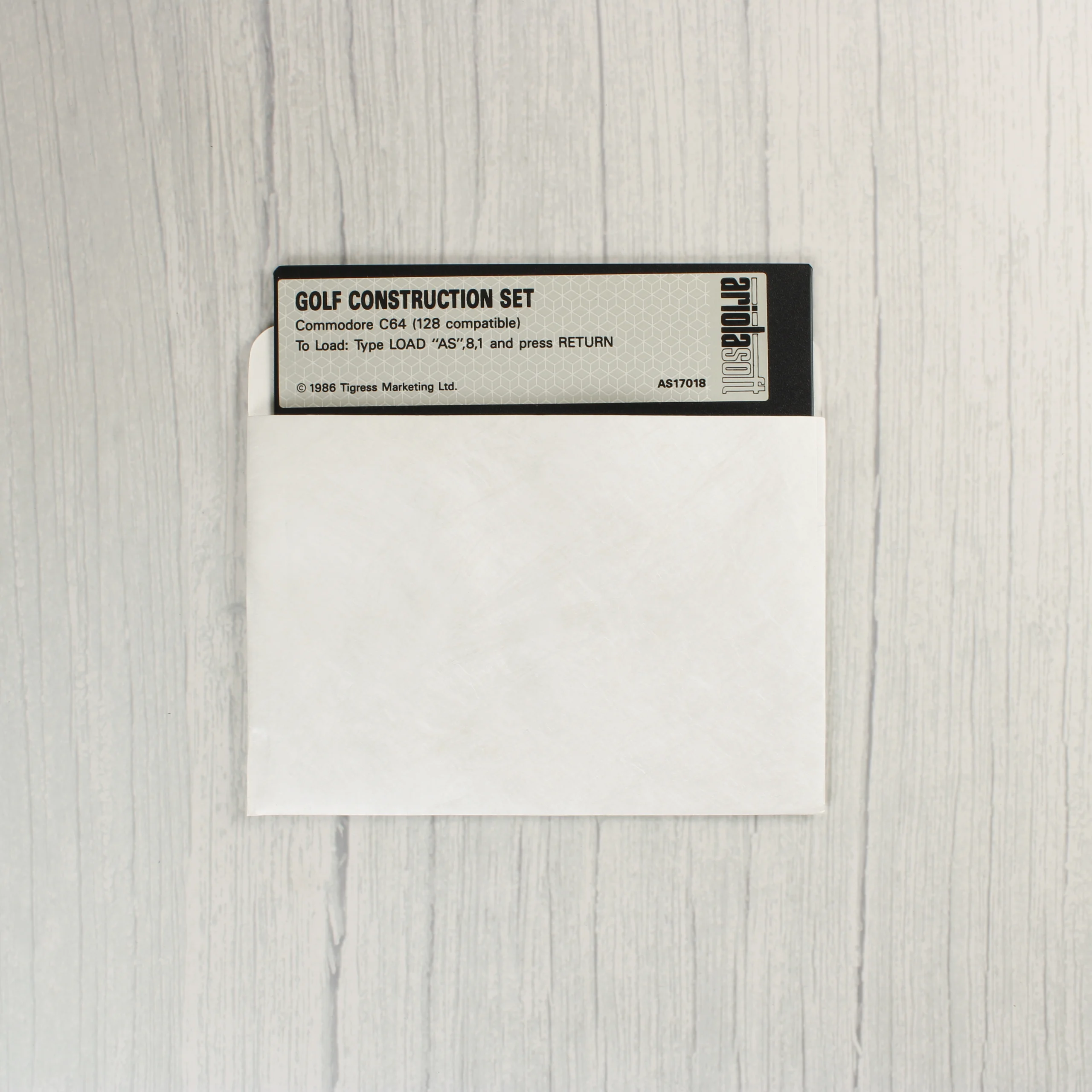 The Golf Construction Set videójáték Commodore 64-re. Ariolasoft kiadás, 5,25 colos floppy lemez, eredeti tokkal és útmutatóval.