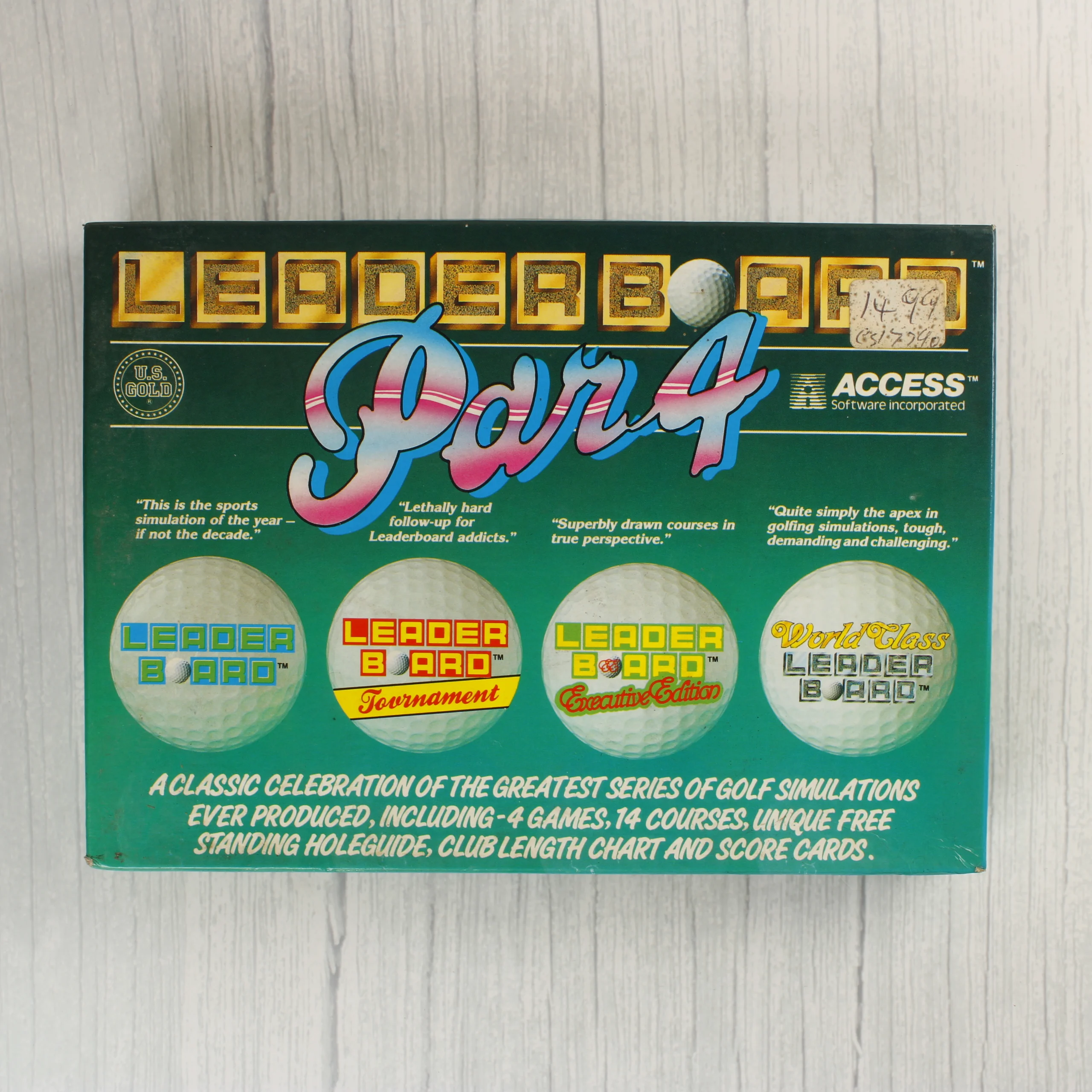 A Leader Board Par 4 egy Commodore 64/128 platformra megjelent videójáték-gyűjtemény, amely négy különböző golfszimulációt tartalmaz. A csomag egy zöld alapszínű, kartonból készült dobozban található, amelynek elején négy golflabda látható a játékok logóival. A készlet két darab fekete színű magnókazettát tartalmaz, amelyeken a szoftverek találhatók. A dobozban mellékelve van egy fekete-fehér mintás pontozófüzet (Score Card), valamint egy színes, illusztrált segédlet az ütők és az erőnléti mutatók használatához. A doboz hátoldalán színes képernyőmentések és angol nyelvű leírások mutatják be a játékmenetet. A csomagoláson egy régi árcédula maradványa látható a jobb felső sarokban.