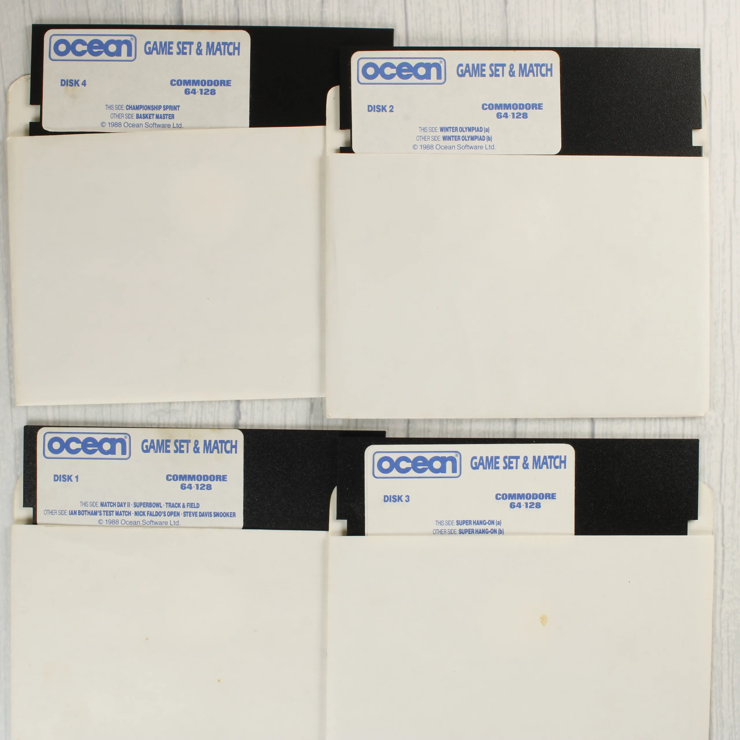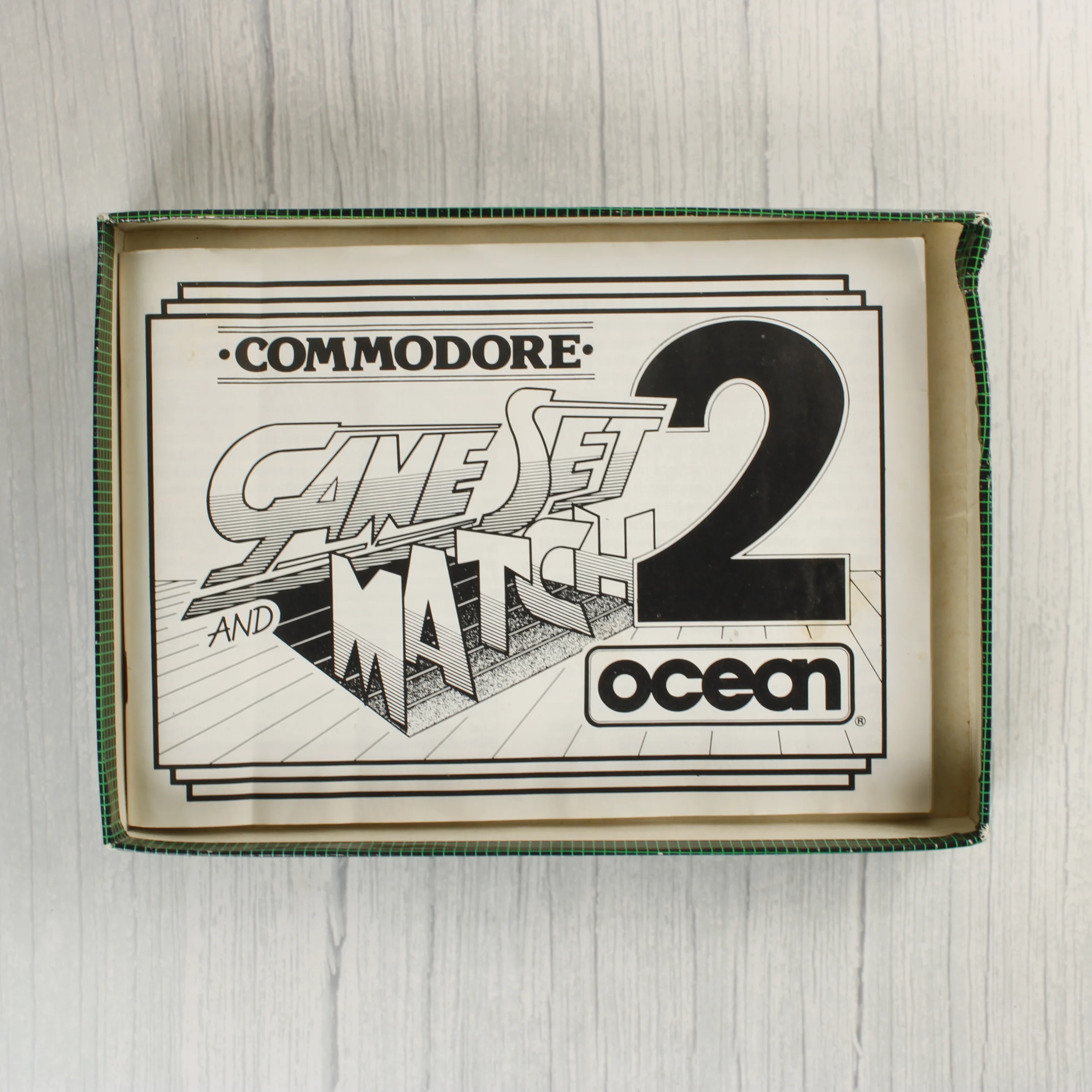Az Ocean Software által kiadott Game Set and Match 2 egy sportjáték-gyűjtemény Commodore 64 és 128 rendszerekhez. A csomag egy nagyméretű, színes kartondobozban érkezik, amelynek előlapján a válogatásban szereplő játékok borítóképei láthatók egy rácsos mintázatú háttér előtt. A készlet tartalmaz négy darab 5,25 colos floppy lemezt, amelyek fehér papírtokokban helyezkednek el. A lemezeken kék-fehér Ocean címkék találhatók, amelyek jelzik a lemez sorszámát és a rajtuk lévő játékokat, mint például a Match Day II, Superbowl vagy a Super Hang-On. A csomag része továbbá egy fekete-fehér nyomtatású használati útmutató is. A doboz hátoldalán többnyelvű leírások és képernyőmentések láthatók a gyűjteményben szereplő tíz különböző sportjátékról. A külső csomagoláson az éleknél és a sarkoknál kopásnyomok és enyhe benyomódások figyelhetők meg.