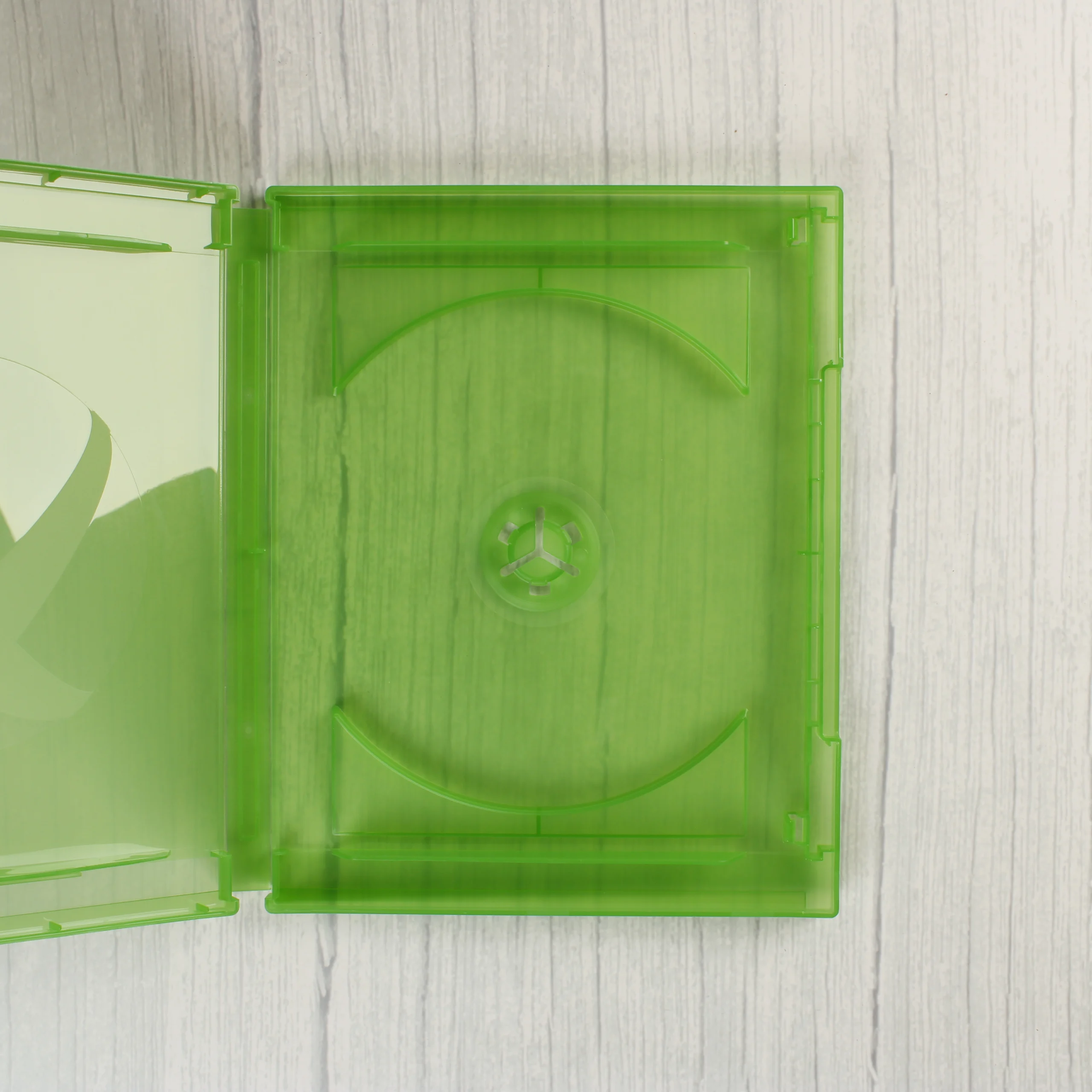 Prémium minőségű, 11 mm-es áttetsző zöld Xbox One videójáték-tok polipropilénből, külső borítófóliával.