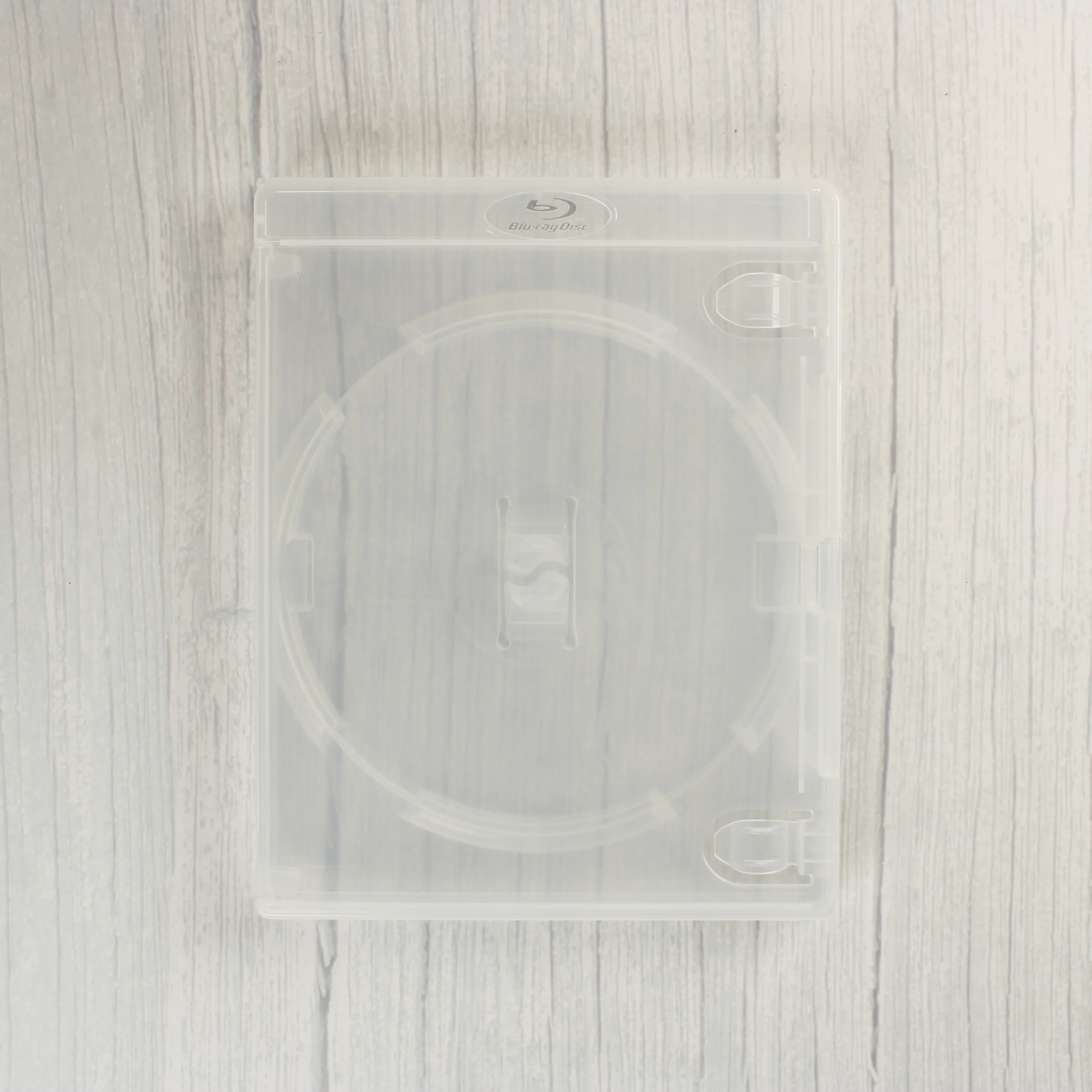 Prémium minőségű, 15 mm-es áttetsző Blu-ray tok dombornyomott logóval és egy lemezes férőhellyel.