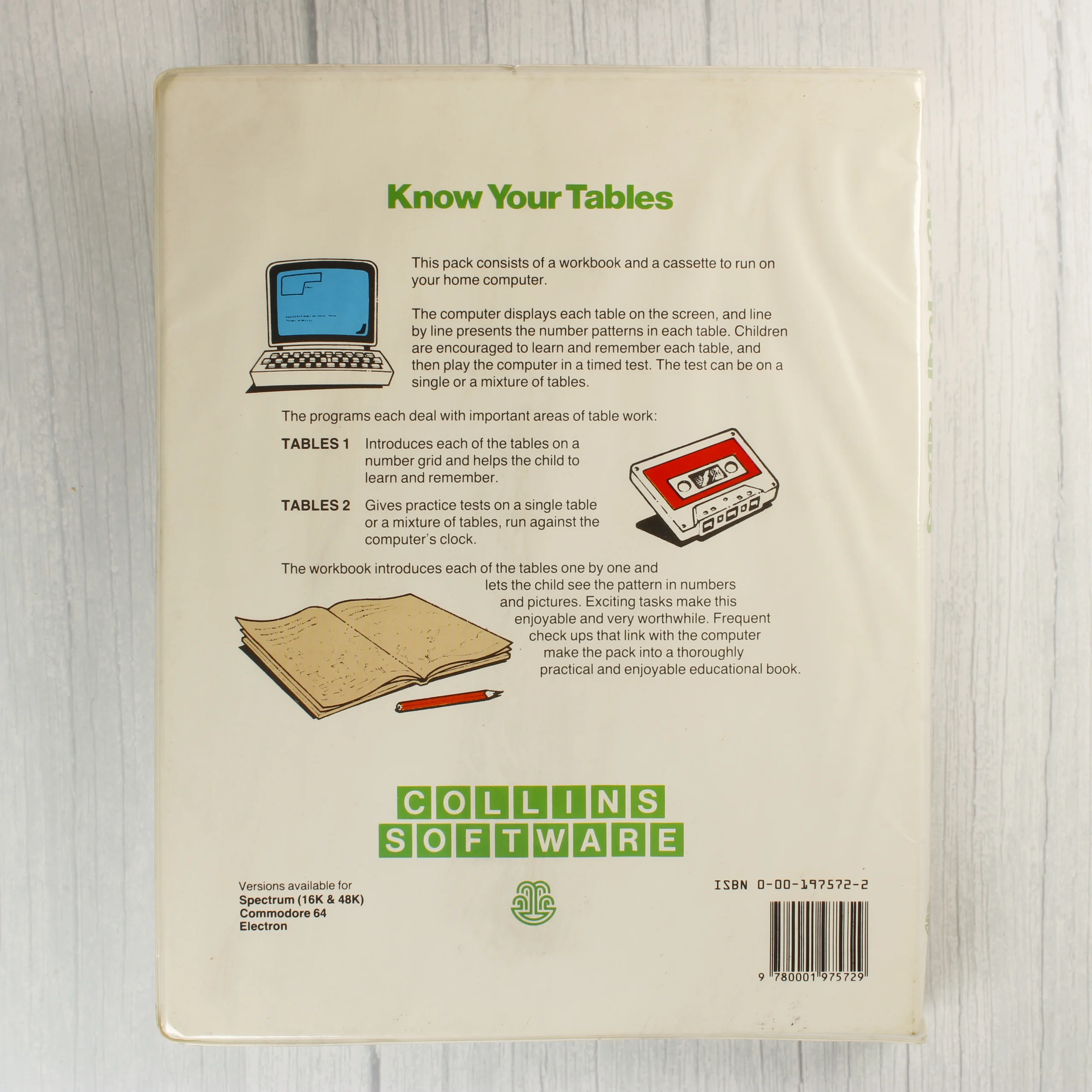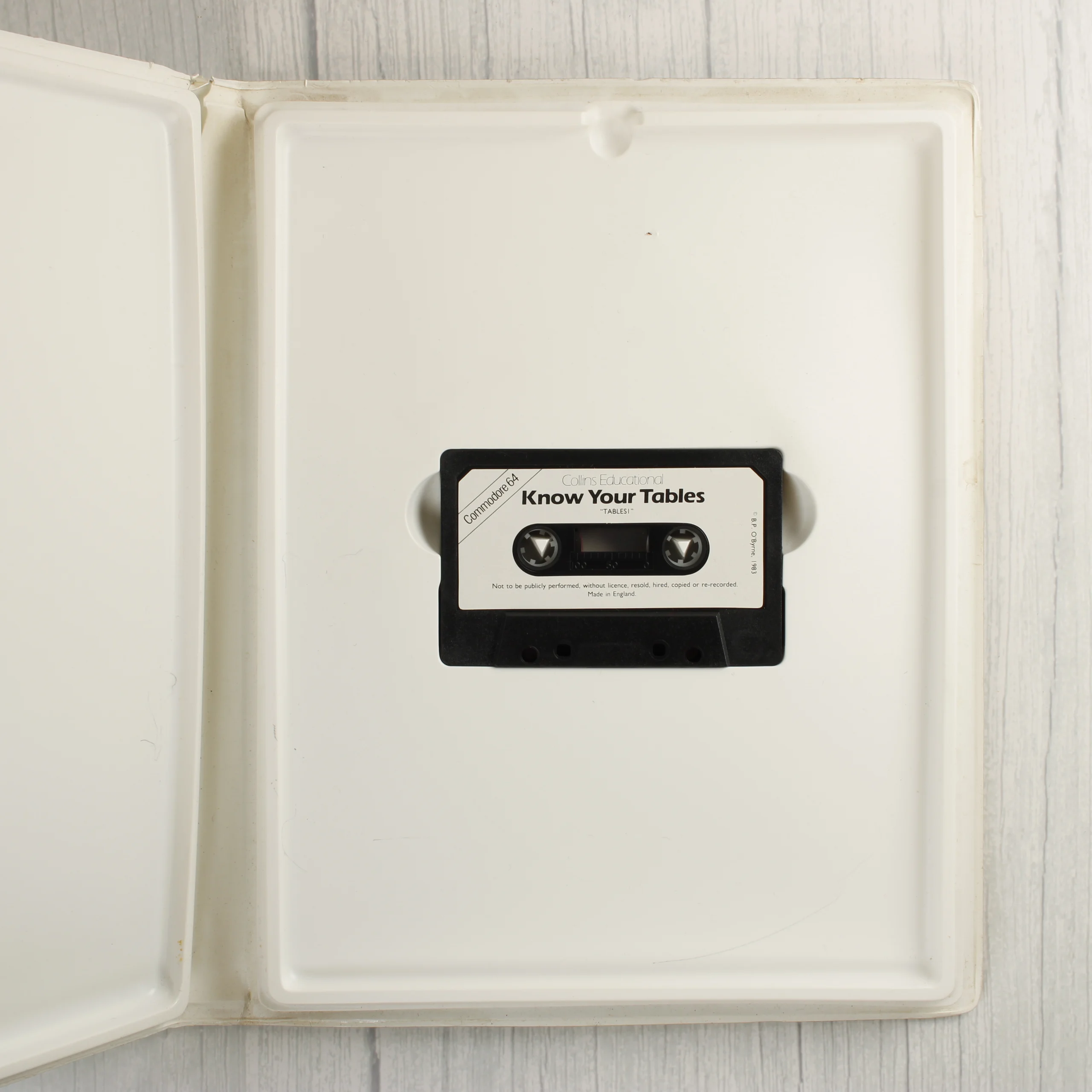 A Collins Software által kiadott Know Your Tables egy oktatóprogram Commodore 64 számítógéphez. A csomag egy fehér műanyag tokban található, amely egy mágnesszalagos kazettát és egy kísérő füzetet tartalmaz. A borítón két gyermek látható egy korabeli számítógép előtt, zöld és fehér színek dominálnak a grafikán. A tok hátoldalán rövid leírás olvasható a program tartalmáról, valamint az ISBN azonosító és egy vonalkód is helyet kapott. A belső részben a fekete színű kazetta egy mélyített műanyag tálcában fekszik. A termék a 7 és 11 év közötti korosztály számára készült, B.P. O'Byrne közreműködésével. A csomagoláson egy eredeti, 9,95 fontos árcímke is látható.