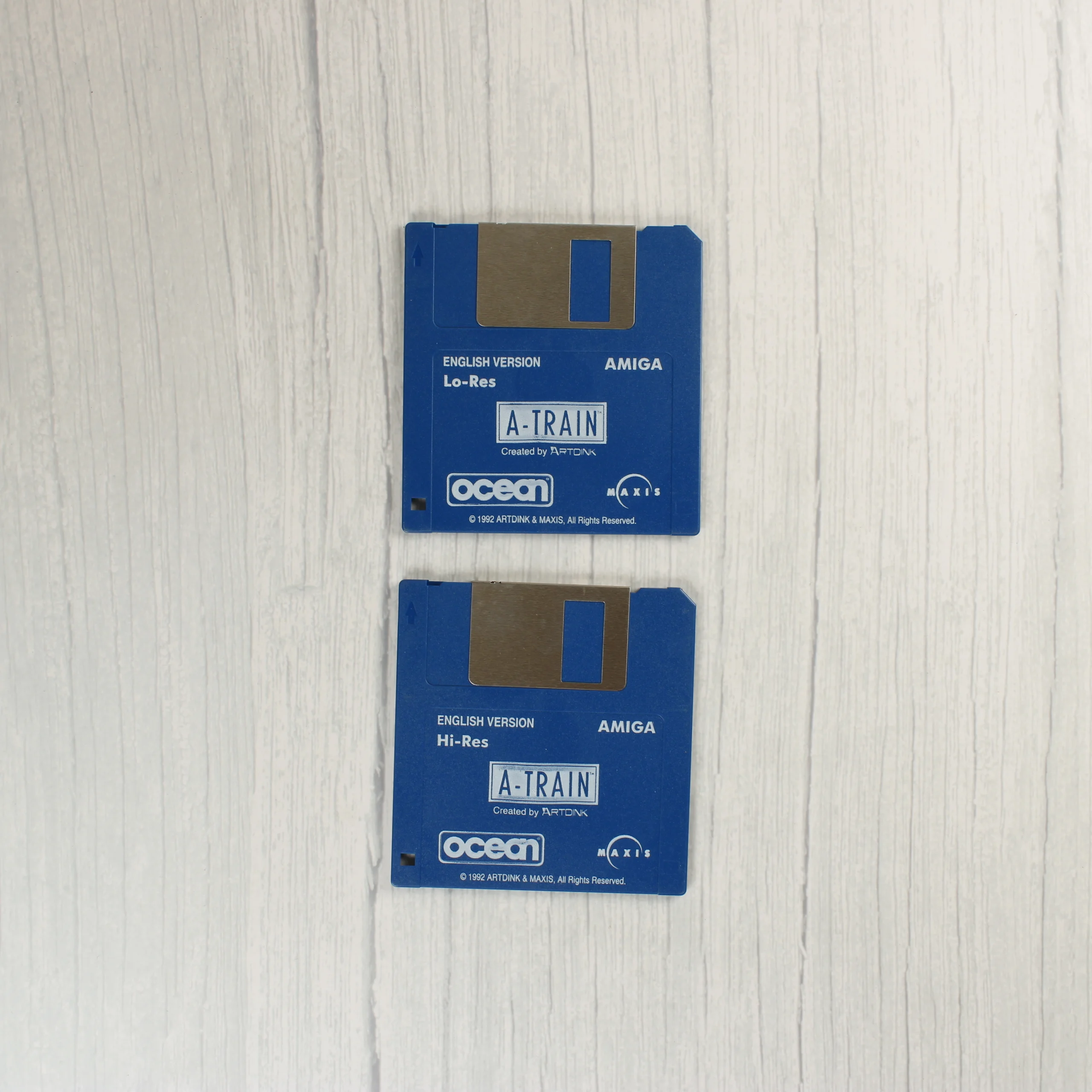A-Train, Amiga, videójáték, retro, szimuláció, Ocean, Maxis, Artdink, floppy lemez